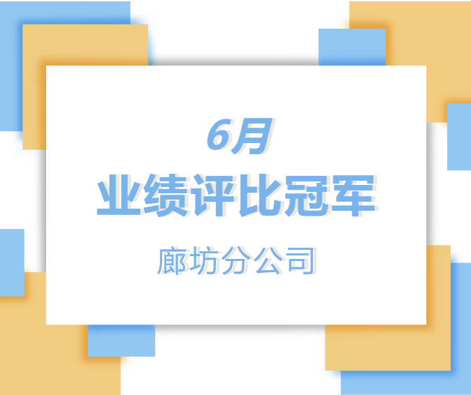 在六月的业绩评比中,廊坊分公司以骄人的成绩脱颖而出,在五、六月份都超额的完成经营业绩指标,同时六月份环比五月份净增长53个积分,最终以优异的业绩荣获六月份业绩评比冠军!