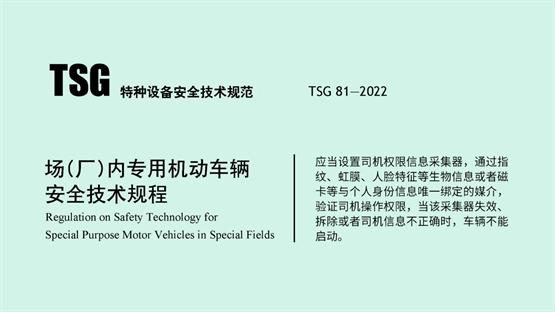 2022年市场监管总局发布的《场(厂)内专用机动车辆安全技术规程》(TSG 81-2022),其中要求叉车“应当设置司机权限信息采集器,通过指纹、虹膜、人脸特征等生物信息或者磁卡等与个人身份信息唯一绑定的媒介,验证司机操作权限,当该采集器失效、拆除或者司机信息不正确时,车辆不能启动。”