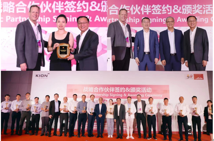 在林德30周年庆典活动期间,凯傲集团首席执行官Rob Smith、凯傲集团董事兼凯傲亚太及美洲区总裁郭进鹏携管理层和战略合作伙伴签约,并向数十家长期跟随林德叉车一起成长的代理商颁奖。