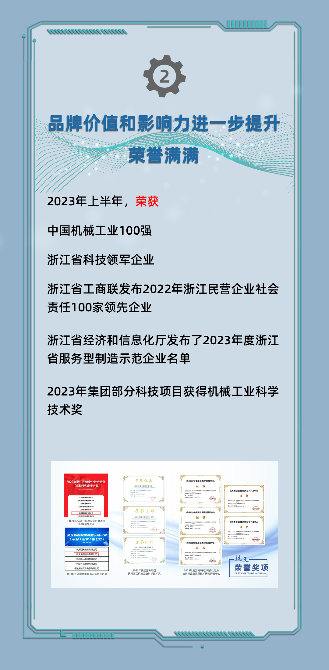 杭叉集团股份有限公司连续获“中国制造业企业500强”,“中国民营企业500强”,“中国大企业集团竞争力500强”、获“全国五一劳动奖状”和“全国机械行业文明单位”,并入选“中国机械工业排头兵企业”和“浙江经济年度榜样”。公司是国家高新技术企业,浙江省装备制造业重点培育企业,拥有国家认定企业技术中心、国家认可实验室、浙江省重点企业研究院、省级企业高新技术研发中心、省工业车辆工程技术研发中心、省级智能工业车辆院士工作站、博士后科研工作站等。