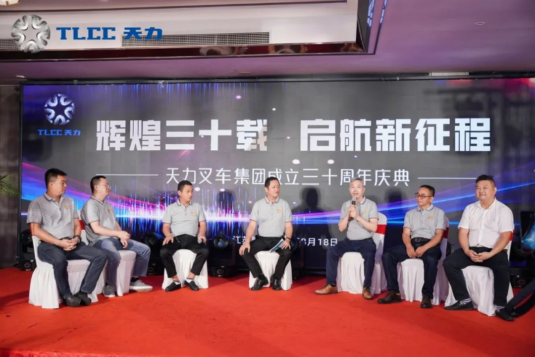 庆典期间,集团总经理白军火邀请部分曾在天力叉车集团工作过的、在行业有突出成绩的员工代表登台论道,一起围绕行业趋势、如何利用集团平台进行的资源整合,分别就技术方向、人才、供应链优化和市场拓展方面做了深度分享。
