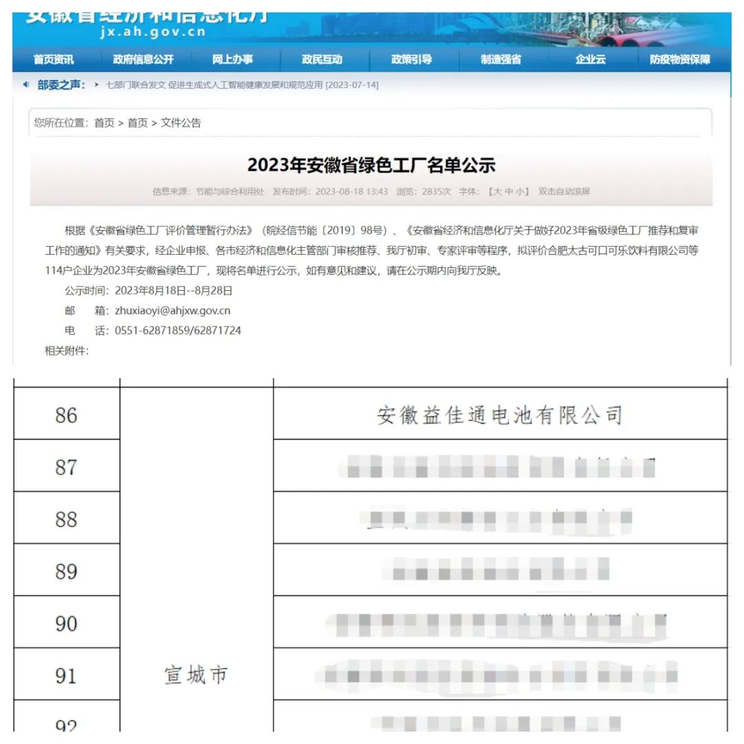 8月18日,由安徽省经济和信息化厅发布的《2023年安徽省绿色工厂名单公示》通知,通知中确定我司荣获2023年度安徽省绿色工厂殊荣。