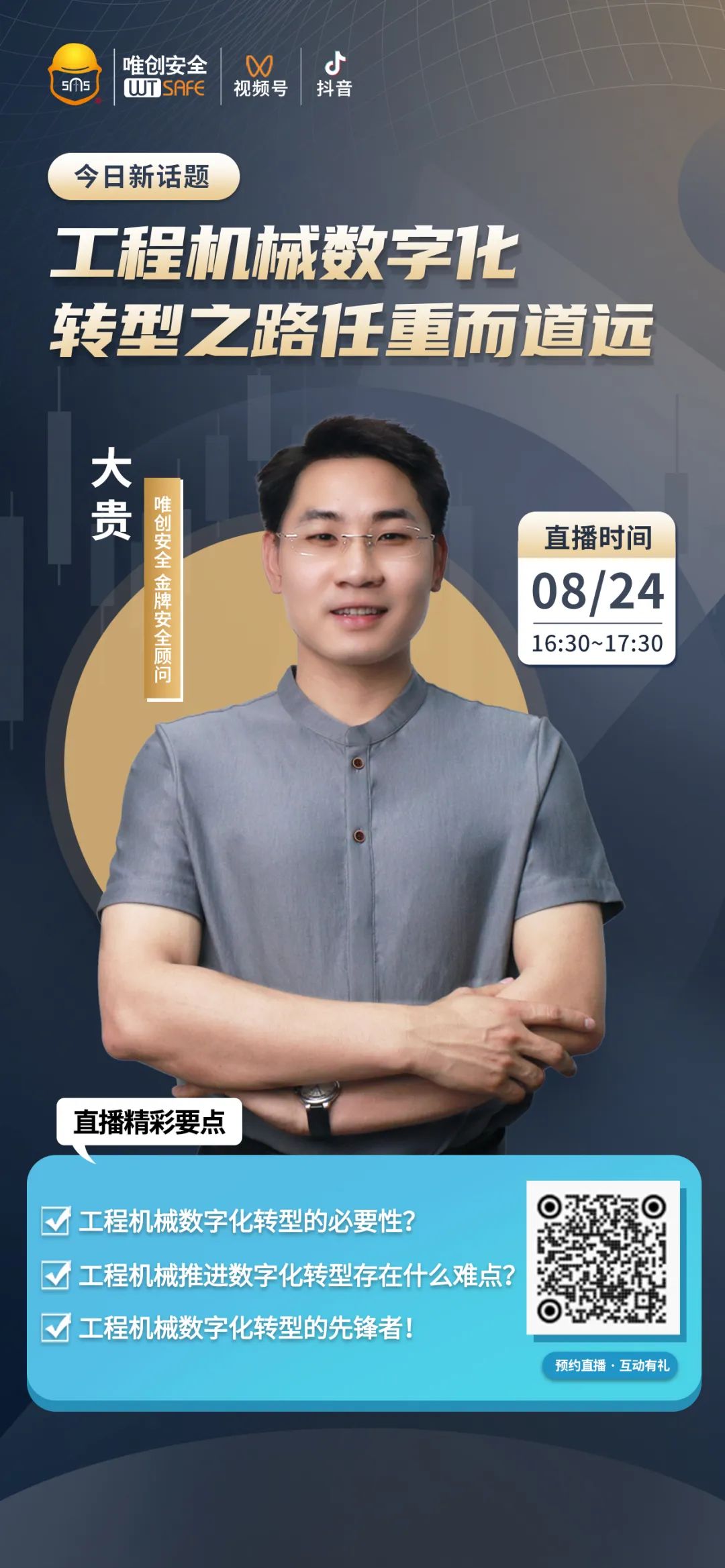 工程机械数字化转型势在必行,但这条转型之路必定任重而道远,那转型之路上存在哪些难点?应当如何解决?这条路上是否有先锋者已经在前行呢?本周四下午4点半,唯创安全直播间准时开播,由金牌安全顾问-大贵为我们带来关于工程机械数字化转型方面的分享。快来预约直播啦!