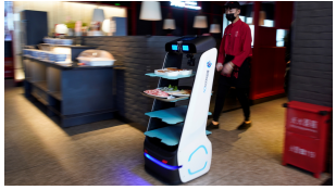 图 3:自主机器人食品服务系统无缝导航餐厅楼层以交付订单。随着技术的不断进步和功能的扩展,服务机器人预计将在各个行业中变得越来越普遍。通过在不同的任务中提供帮助和支持,服务机器人可以帮助提高效率,降低劳动力成本,提高整体服务质量。