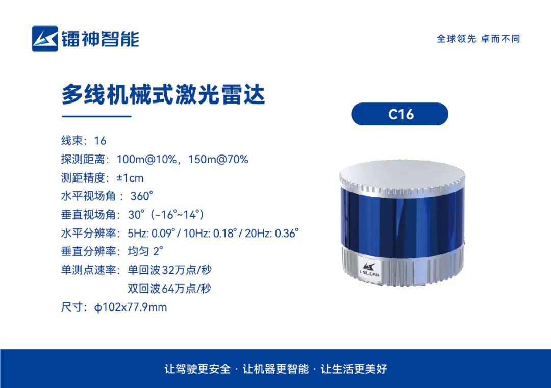 深圳市镭神智能系统有限公司成立于2015年2月,是一家纯内资的国家级高新技术企业,以强大的自主研发实力成为全球领先的全场景激光雷达及整体解决方案提供商,致力于打造全国产化的高性能激光雷达及行业应用方案,秉持着“让驾驶更安全,让机器更智能,让生活更美好”的使命,以高端、稳定、可靠的激光雷达环境感知技术赋能产业升级,服务覆盖自动驾驶、智慧交通、轨道交通、通用航空、机器人、智慧物流、高端安防、港口、测绘及工业自动化等十大产业生态圈,以卓而不同的感知精品为客户创造价值,立足全球构建智能感知的黄金时代。