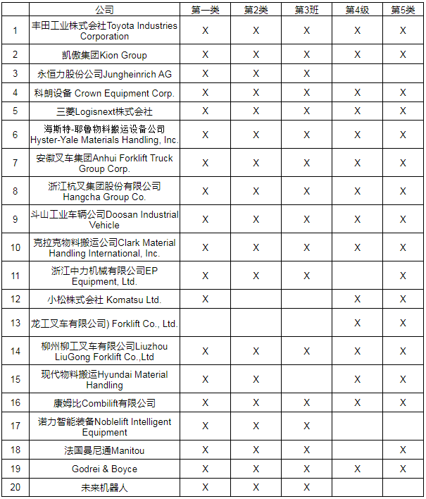 2022年全球20强叉车供应商排行榜(中叉网修正后排名)(基于2022年收入)