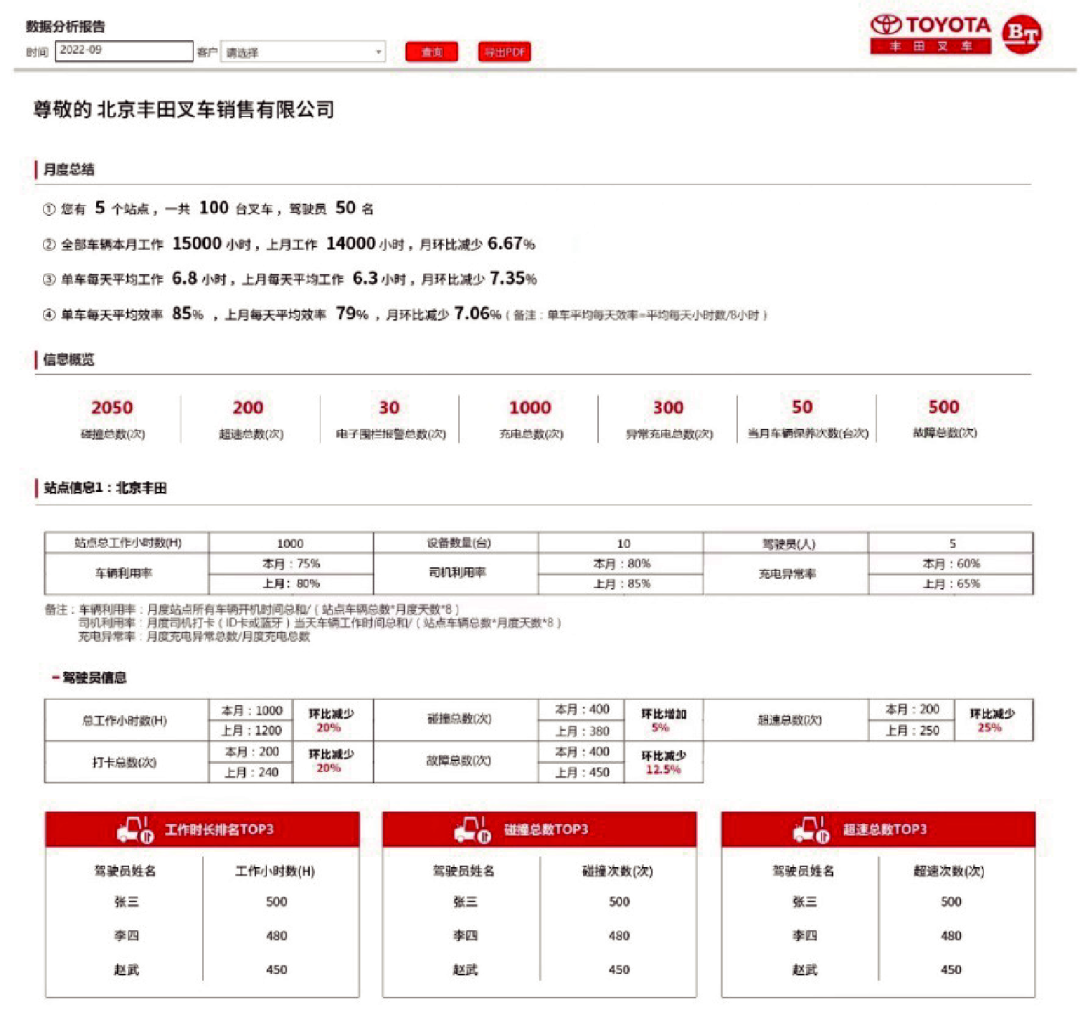 系统通过全面监控车辆及司机数据,能够提供详细的车辆及人员的效率报表,供管理者使用。