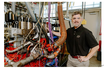 Greg Shaver 正在研究大型柴油发动机,以提高道路效率和排放。(图片来源:普渡大学照片/Kelsey Lefever)
