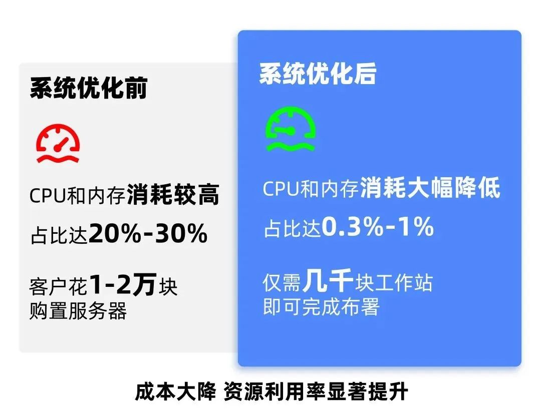 服务器选型,往往取决于系统的配置要求,高配的服务器成本相对也较高,新系统在保障相同配置同时,实现降本增效等多重目标。