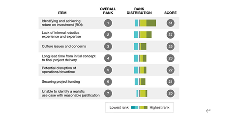 这些受访者认为,采用机器人面临的最大挑战包括: