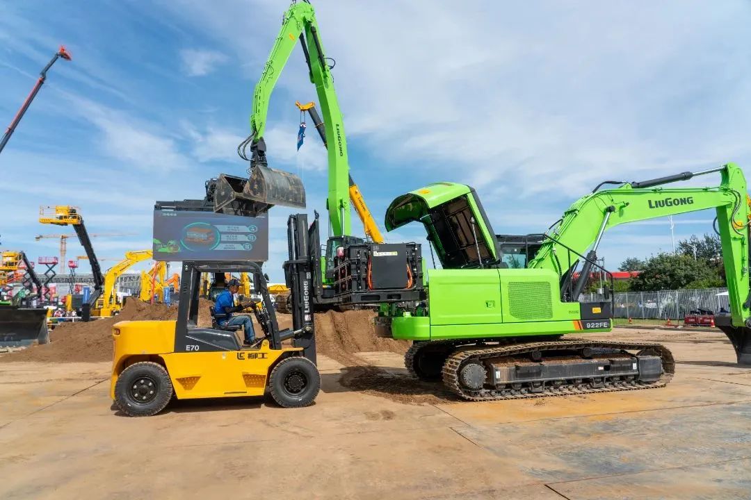 现场还重磅发布了解决续航焦虑的混动装载机8100TE,拖电、柴油双驱动的抓料机973FMH,配备全自动核心换电机构的换电挖掘机922FE,以及960FE双动力挖掘机、LD36DG4大马力推土机、LT32JE行走混合驱动(两液两电)高空作业平台等新产品,并展出柳工小型电动设备820TE小型装载机、385BE滑移装载机、985F和9125F新型矿山专用型大型挖掘机以及智能化无人压路机+无人摊铺机机群等全系列电动智能化设备,展现柳工研发创新制造实力。