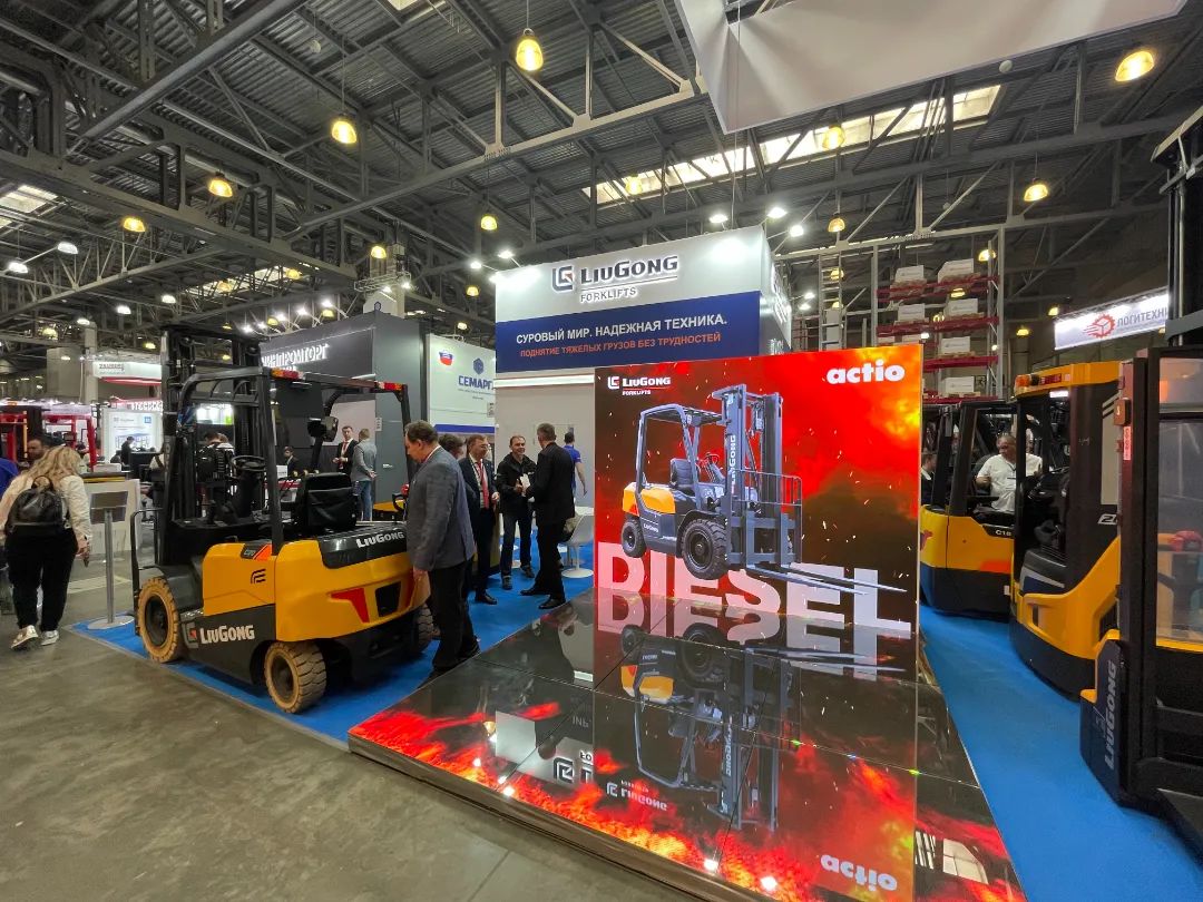 作为俄罗斯市场中国品牌的佼佼者,柳工叉车在柳工俄罗斯子公司及俄罗斯中央地区经销商Actio Rus的支持及协助下,携主要系列叉车产品亮相展会现场,不仅有传统系列内燃叉车,还包括C系列四支点电叉、C系列三支点双驱电叉、越野叉车、仓储前移车、电动搬运车、电动堆垛机等,同时针对新款E系列全系列叉车、集装箱正面吊等重磅产品进行了材料宣传,是展会上为数不多的可以提供全系列物流搬运设备的厂商。