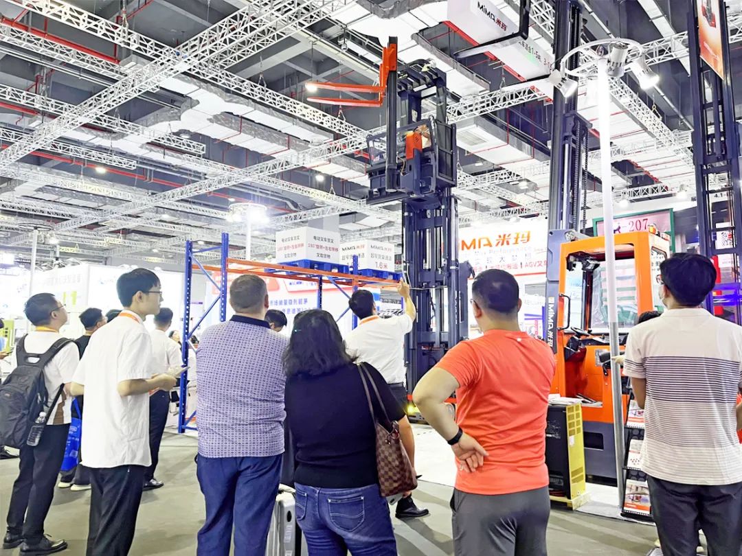 展会现场,最为抢眼的是MiMA米玛人上行三向堆垛车MCC16,操作人员现场演示车辆的行驶、起升、下降以及货叉180°旋转和左右侧移功能,引来无数国内外观展人员现场驻足与拍照。