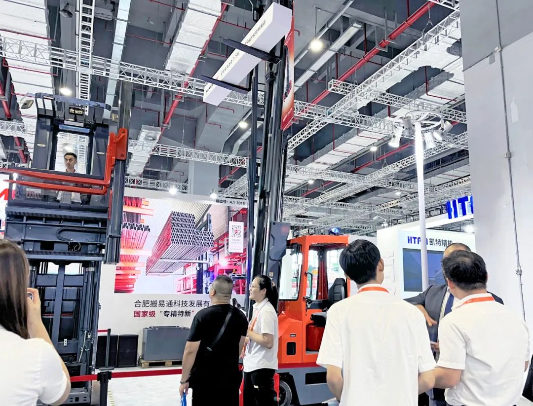 此次展会,除展示人上行三向堆垛车MCC16以外,还展示了新款全向平衡重叉车MQK30、新款座驾前移式叉车MFZ20以及全球首创双驱四轮平衡重AGV本体MKV25,为不同客户提供了多种物料搬运解决方案。