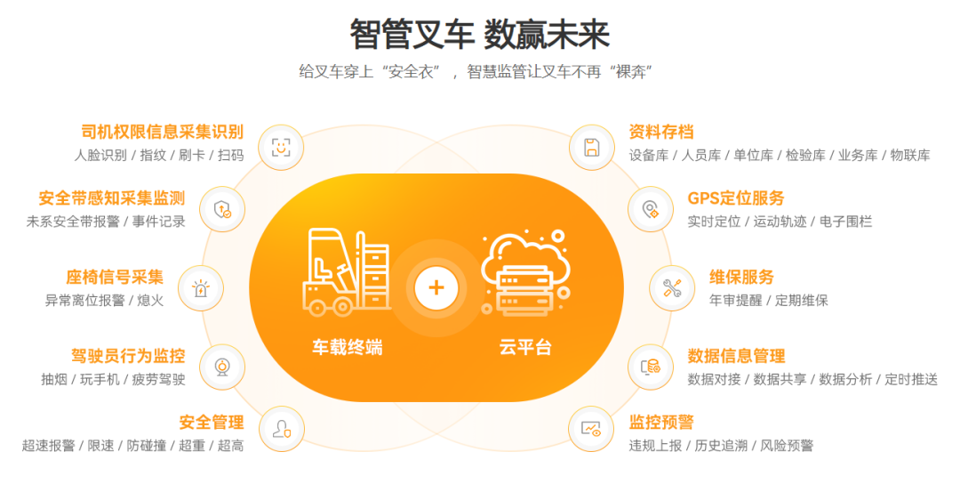 公司核心产品系列——叉车防撞系统深度运用AI 视觉算法、雷达感应技术与UWB测距技术,覆盖叉车、正面吊、装载机等机械设备的智能防碰撞、超速报警、重量管理、车队管理等安全服务,精准构建“人、车、货、场”全场景风险预警与防护。