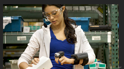 仓库工作人员使用耳机和可穿戴设备,以及语音引导的人工智能技术来实现人与机器的同步。
