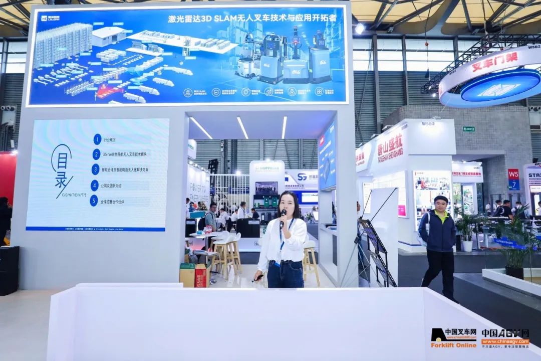 在展会现场,镭神智能系统事业部副总经理王婉婉女士对代理政策和产品进行深入解读,她表示:镭神智能激光雷达3D SLAM无人叉车填补了高端市场空白,解决目前市场上传统低端无人叉车面临的痛点,基于公司整体发展战略,充分发挥自身产品技术和资源优势,引领无人叉车行业快速发展的美好愿景,并在现场招募全球合作伙伴,打造全球事业共同体、利益共同体,吸引了众多参展观众的咨询,期待开启合作新篇章。