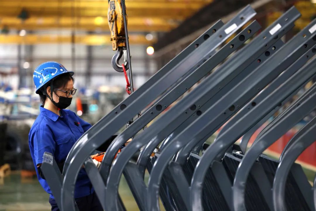 工人在安徽合力股份有限公司“合力叉车”智能化整车装配生产线上作业。解琛 摄