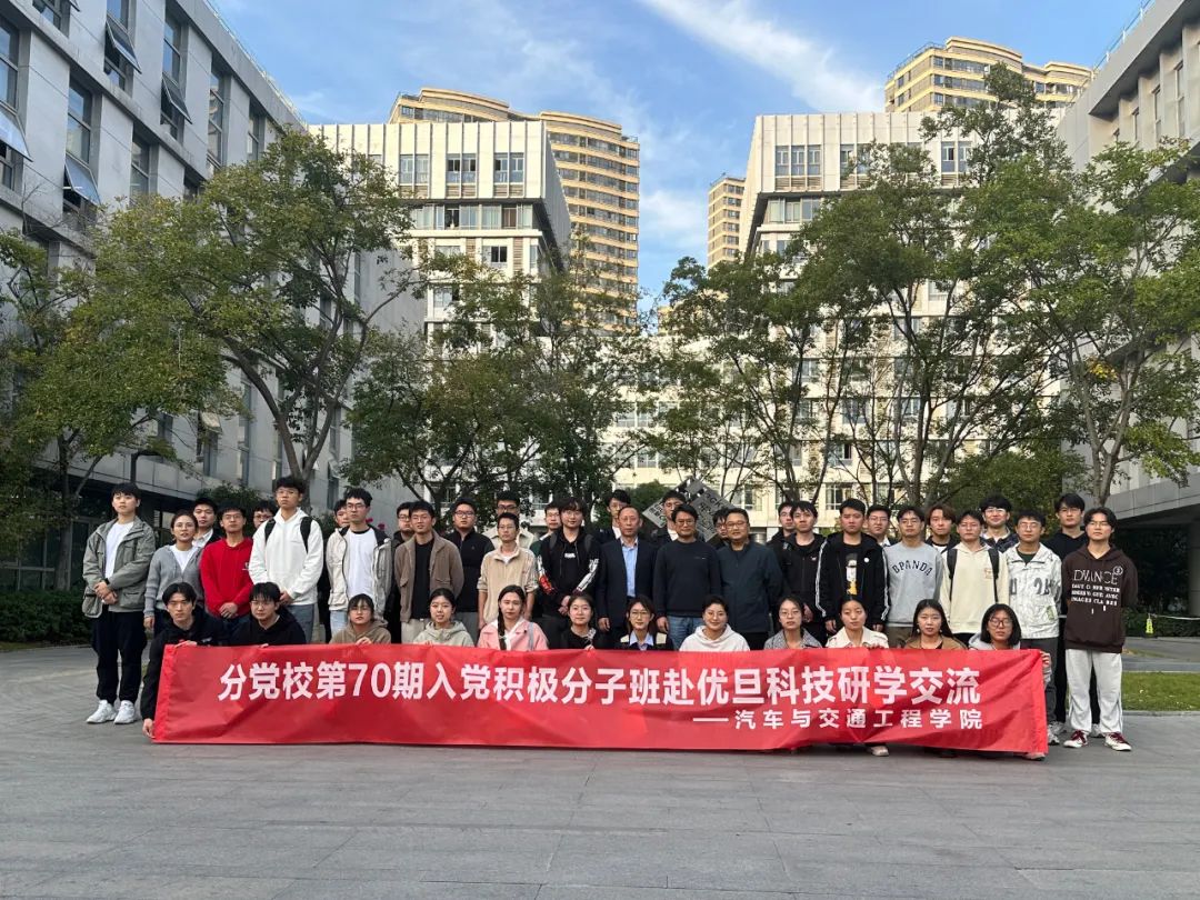11月8日下午,合肥工业大学汽车与交通工程学院(以下简称“汽交学院”)党委与安徽优旦科技有限公司党支部联合开展学习贯彻习近平新时代中国特色社会主义思想主题教育。汽交学院党委书记白修山、副书记张金伟、优旦科技党支部书记彭勇俊以及汽交学院分党校第70期入党积极分子班学员和优旦科技党支部全体党员共同参加此次学习。