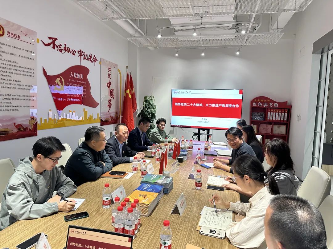 随后,白修山书记围绕党的二十大报告中关于中国式现代化五个特征的阐述,以及加快实现高水平科技自立自强、构建新发展格局等主题,给全体党员上了一堂生动的党课,号召大家深入学习贯彻习近平新时代中国特色社会主义思想,学出对党忠诚、学出使命担当、学出实干精神、学出深厚情怀,持续推动习近平新时代中国特色社会主义思想在产教融合方面落地见效。