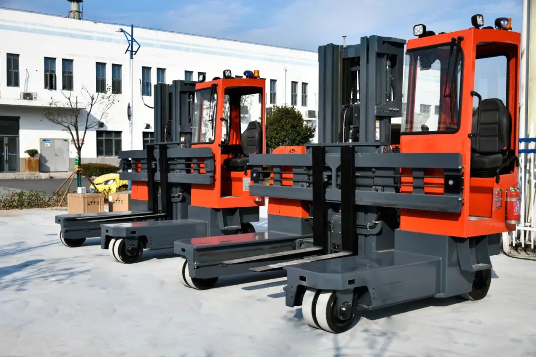 2、该客户购置MQC45全向叉车载荷4.5吨,起升高度4.5米,高精度门架可整体前移或缩回,超宽的起升平台,搬运物料具备良好视线,更安全更高效;
