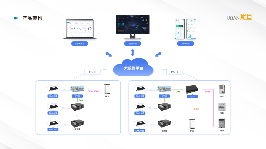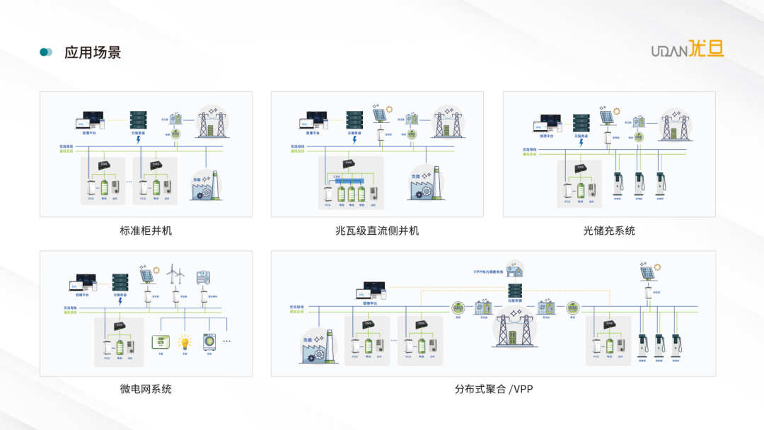 目前,从BMS从控到BMS主控,从EMS到PDU,整个智能管理终端硬件层面的核心部件我们都可以提供,然后再到云端,包括数据平台和运营管理平台,优旦可以提供端云一体的完整的工商业储能智慧管理解决方案。我们的产品适配不同的系统拓扑结构,包括直流侧并机、交流侧并机、光储充系统,微电网等,我们已协助客户完成了数百个现场案例。