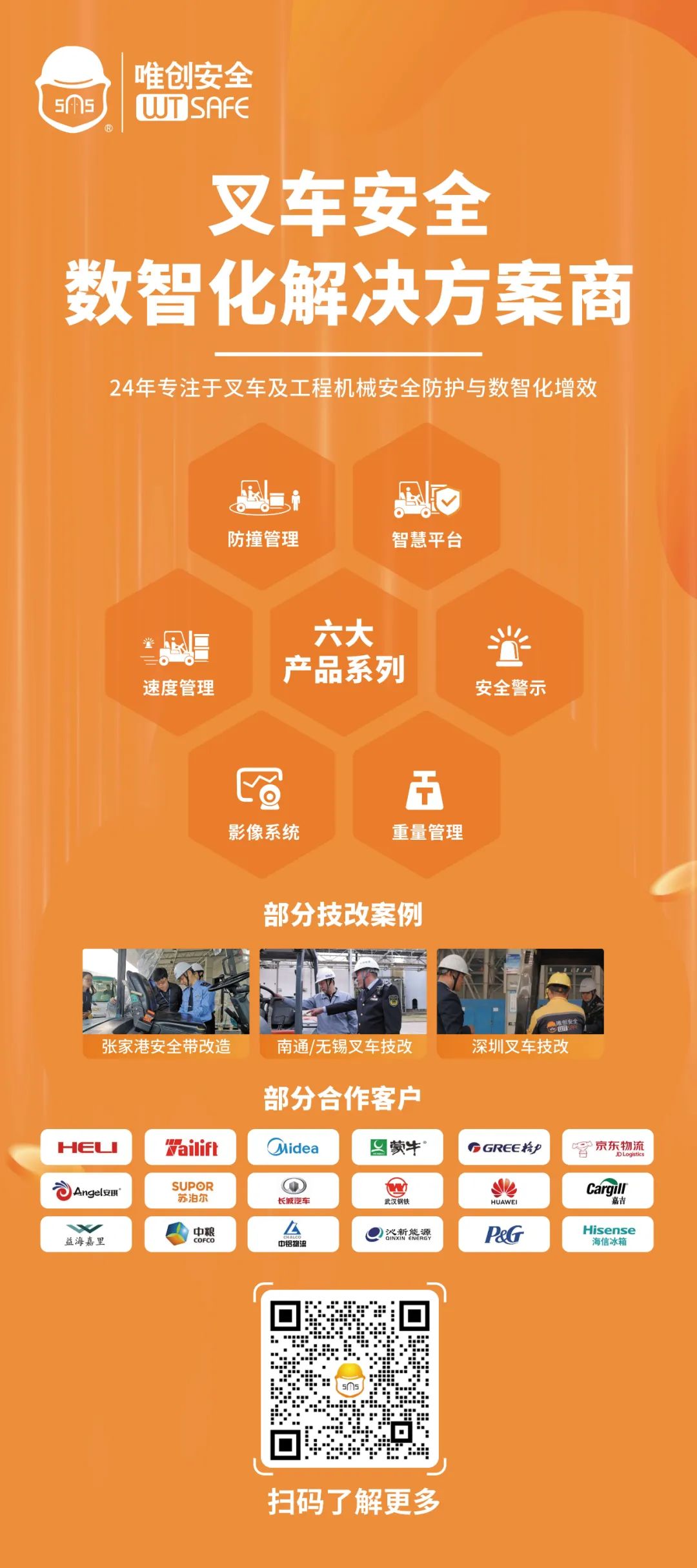 唯创安全致力于提升工程车辆安全和数字化管理,降低安全事故,为安全生产做出积极贡献为使命,专注于为行业提供叉车等工程车辆安全防护与数智化解决方案,以速度、智慧、防撞、重量管理、影像系统和安全警示等方式助力叉车数字化、智能化升级,在工业车辆行业拥有丰富的实际工况安全管理经验。