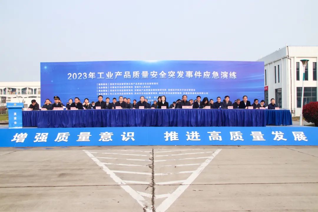 国家市场监管总局质量监督司司长段永升全程指导演练,安徽省市场监管局党组书记、局长韩永生,安徽省市场监管局一级巡视员丁祖权、宣城市委副书记、市长何淳宽、宣城市副市长汪侃参加演练、益佳通电池副总裁杨云求,供应链中心总经理贾云超作为企业协办方负责人全程协助演练。