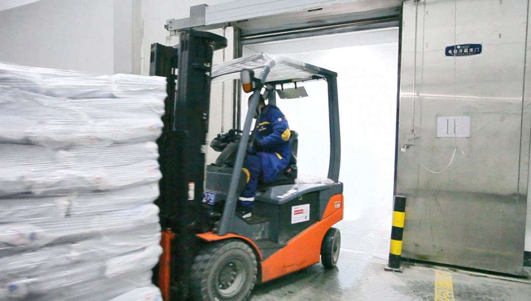 据悉,港新冷链一直在用发展思维引入各类搬运设备,如丰田新能源锂电叉车、自动化分拣入库系统等,不同类型的货物,通过人、车、系统三者有机配合,有效提升企业能效。