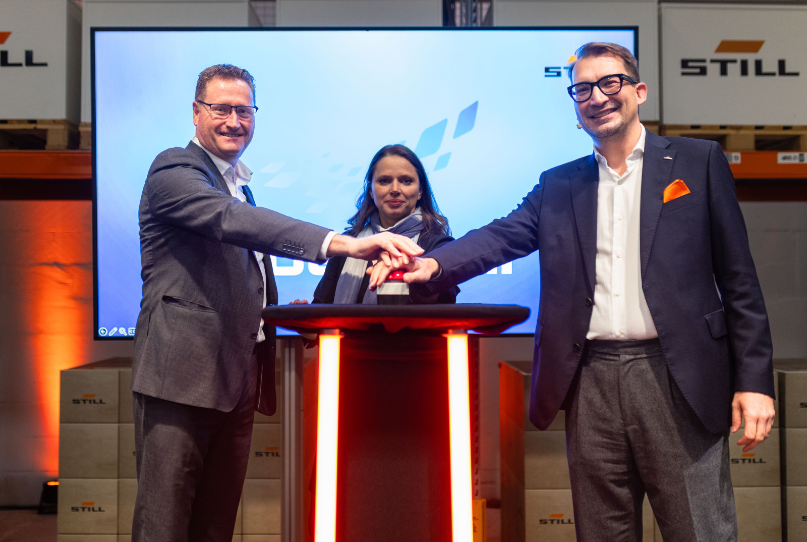 STILL EMEA销售与服务执行副总裁Dr. Florian Heydenreich,与德国汉堡自由汉萨城市经济与创新参议员Dr. Melanie Leonhard和联邦数字与交通部(BMDV)基本事务部门负责人Professor Dr. Klaus Bonhoff一同于当日中午12点按下启动按钮,正式开启了汉堡STILL工厂的24伏特燃料电池系统生产设施。未来,该工厂将批量生产用于仓储技术设备的高性能燃料电池系统 - 从机电中心单个组件的制造,到生产线上燃料电池系统的生产,再到专门构建的测试台上的最终质量检查。特别是复杂的测试过程受到了极大的关注,因为它确保系统正常工作,能够承受极高的压力,并且没有气体泄漏。