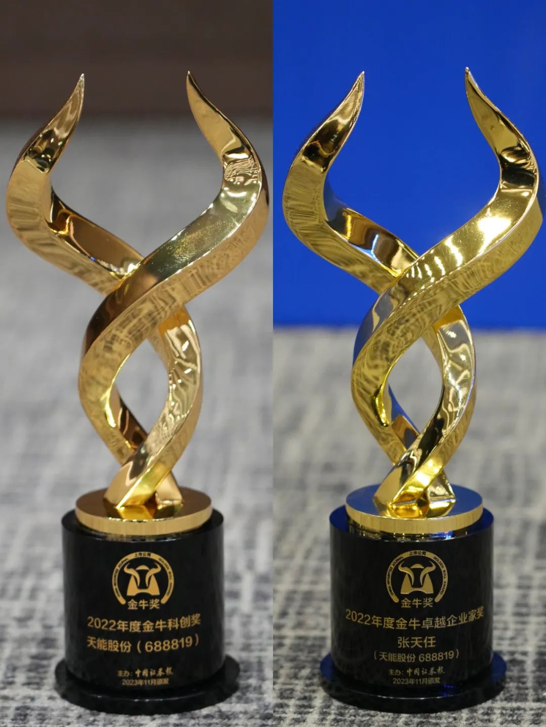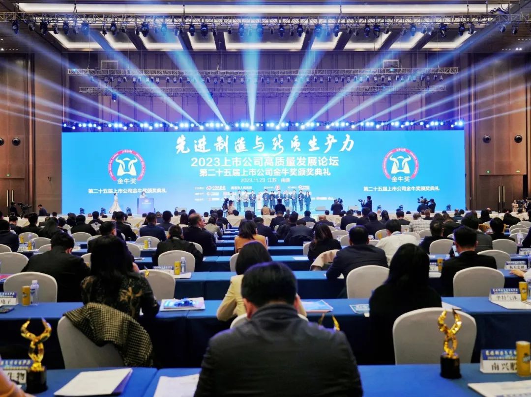 11月23日下午,2023上市公司高质量发展论坛暨第25届上市公司金牛奖颁奖典礼在江苏南通举行。有关领导、专家和企业家代表近1000人与会。论坛发布了备受关注的年度金牛奖项,张天任董事长荣获“2022年度金牛卓越企业家奖”;天能股份荣获“2022年度金牛科创奖”。