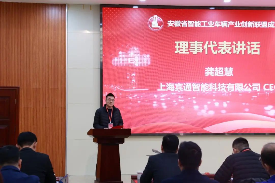 会上,上海宾通智能科技有限公司CEO龚超慧博士作为理事代表讲话,合力工业车辆(上海)有限公司总经理助理胡浩作为联盟代表宣读了《中国智能工业车辆产业生态共创共赢战略合作倡议书》。联盟理事长毕胜作总结发言,代表联盟理事长对下一步工作提出了三个方面的规划和要求。