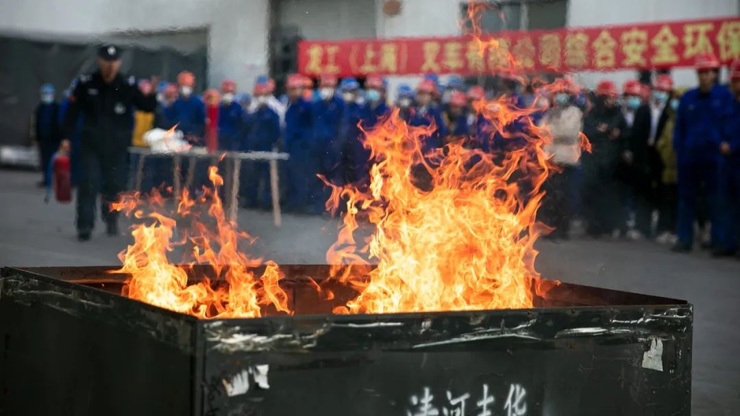 下午3.30分,演练正式开始。由于某种原因车间突发了“火灾”,火势迅速蔓延。