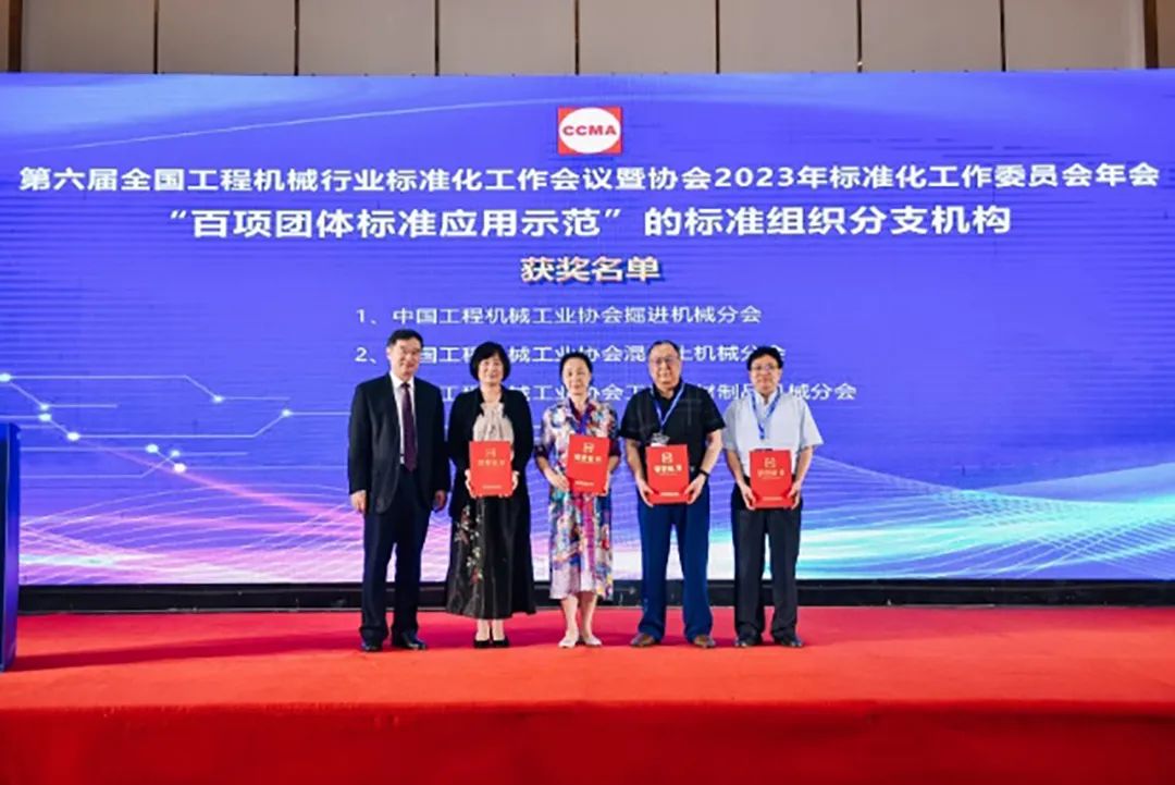 协会从2017年至今已经连续七年参评由工信部组织开展的 “百项团体标准应用示范”项目申报工作,累计有30项工程机械团体标准获此殊荣。2023年6月1日,协会在江苏苏州成功召开了“第六届全国工程机械行业标准化工作会议”,会议期间举行了“工业和信息化部百项团体标准应用示范项目”的颁发证书环节,分别给历年获奖标准的9家组织分支机构和标准起草单位颁发了荣誉证书。