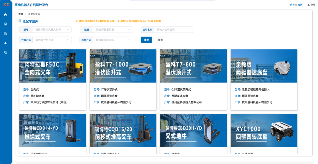 适配车型库展示了科聪控制系统与移动机器人本体合作伙伴的典型案例,我们为适配车型库的每一款车型,提供了可以快速落地的整体解决方案,可以帮助用户快速完成单机的技术预演验证,也可以直接用于机器人集群项目的设计。