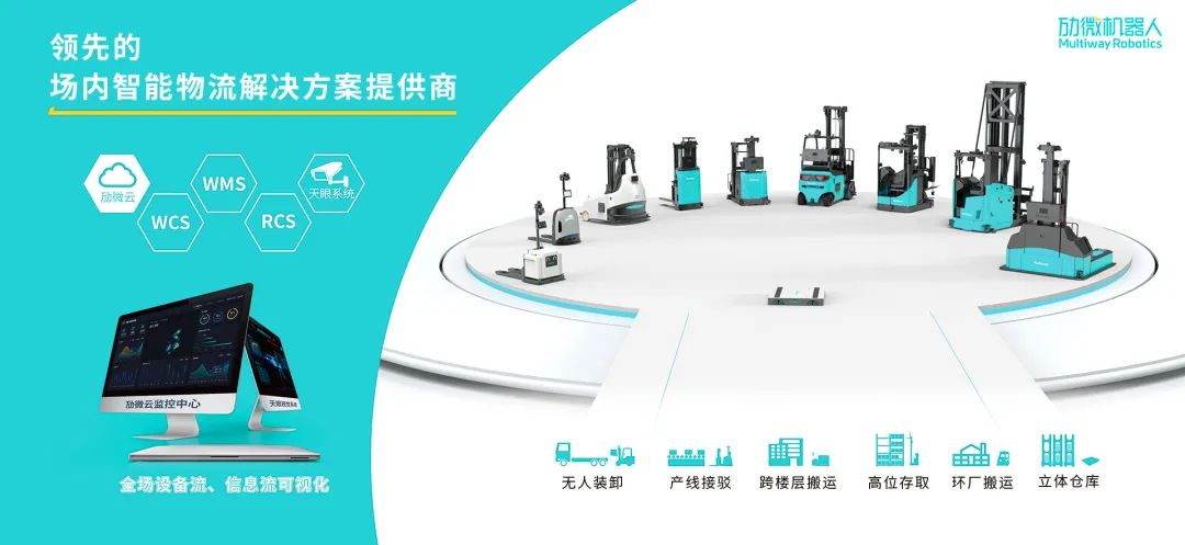作为全球领先的场内智能物流解决方案提供商,劢微机器人专注于先进的机器人与人工智能技术,为客户提供完整的智能制造及智慧物流解决方案。硬件产品包括:各类型无人叉车及四向穿梭车;软件系统包括:劢微云、WMS、RCS、WCS、现场管理系统及多种视觉解决方案。