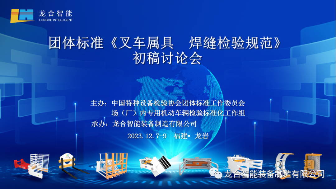 2023年12月7日至9日,中国特种设备检验协会团体标准《叉车属具 焊缝检验规范》起草工作讨论会在福建省龙岩市召开。本次会议由中国特种设备检验协会团体标准工作委员会场厂内专用机动车辆检验标准化工作组(以下简称“场车工作组”)主办,龙合智能装备制造有限公司(以下简称“龙合智能”)承办。来自龙合智能、福建省特种设备检验研究院、龙岩学院、广西壮族自治区特种设备检验研究院、宁夏特种设备检验检测院、林德(中国)叉车有限公司等单位的17名行业专家和代表参加会议。
