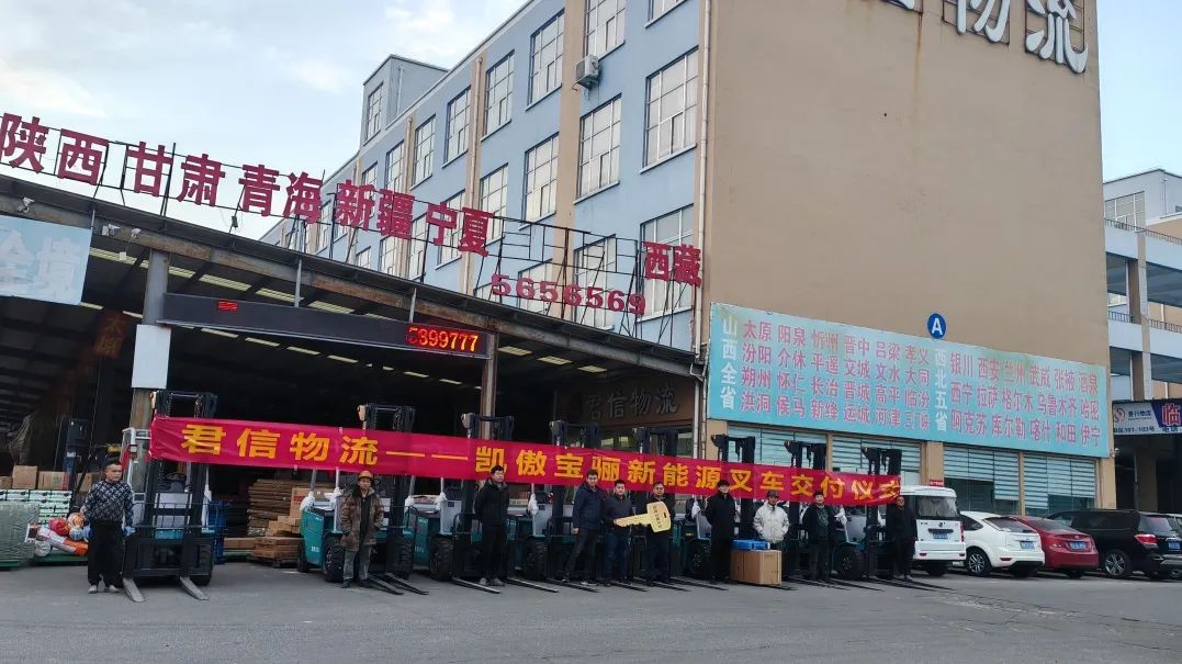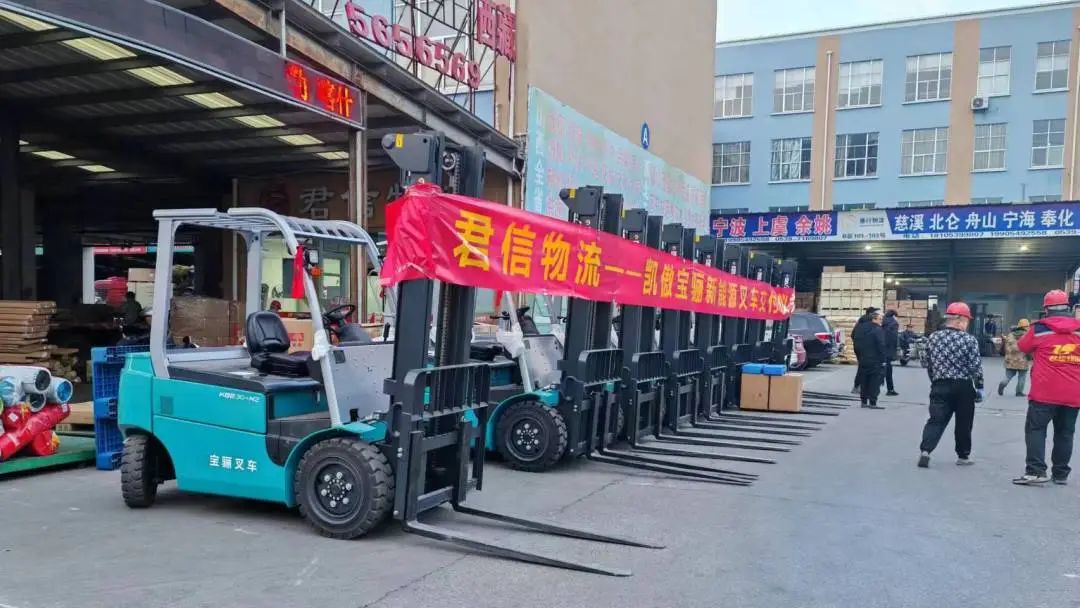 从中国“物流之都”到“绿色物流之都”,临沂一全新物流园里迎来了一批全新的伙伴。十余台宝骊KBE-X2电动平衡重叉车集中交付给园区内一干线物流运输企业,助其绿色搬运再提速。