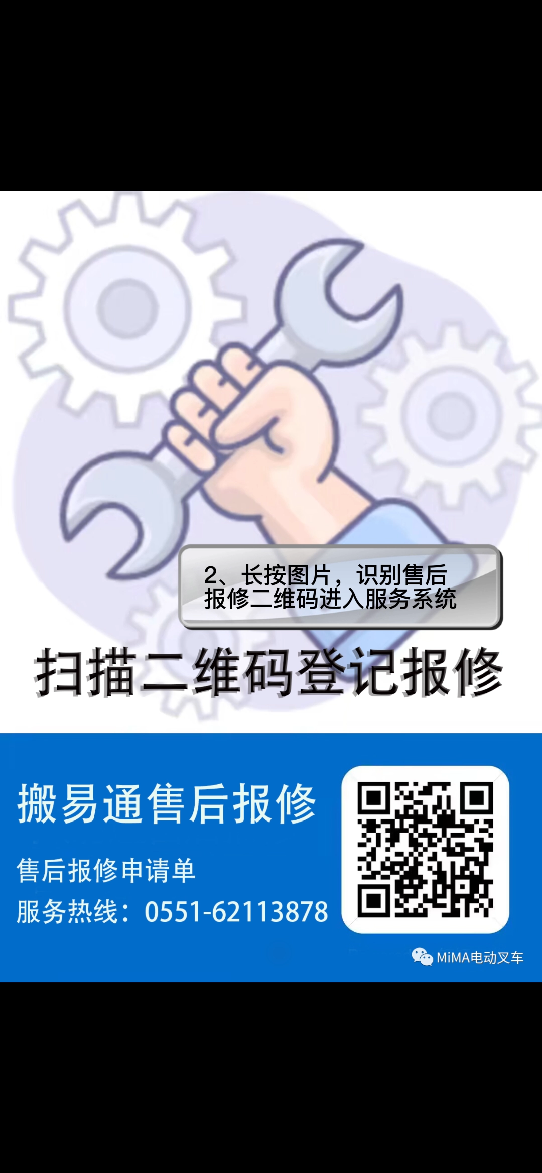 MiMA米玛电动叉车致力于为客户提供专业的售后服务,【线上报修指南】已经上线,产品报修简单又快捷~
