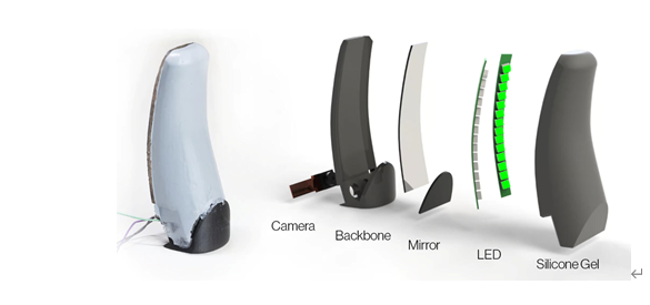 虽然有许多光学系统可以为机器手提供触觉,但它们大多是平面的,因此仅限于指尖。而麻省理工学院的新系统却能在每个手指的整个长度上工作。