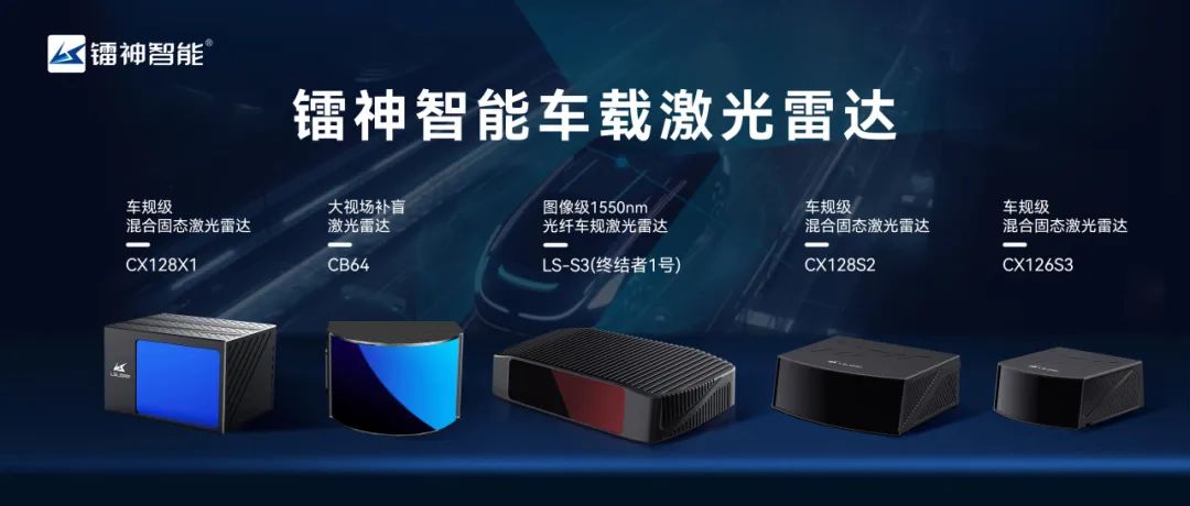 镭神智能车规级高性能激光雷达,包括终结者系列图像级1550nm光纤车规激光雷达、CH128系列车规级混合固态激光雷达、CX系列高性能超薄车规级混合固态激光雷达、CB64系列超大视场角补盲激光雷达等,赋能新能源汽车敏锐的环境感知能力,稳定清晰的点云探测为安全驾驶保驾护航。