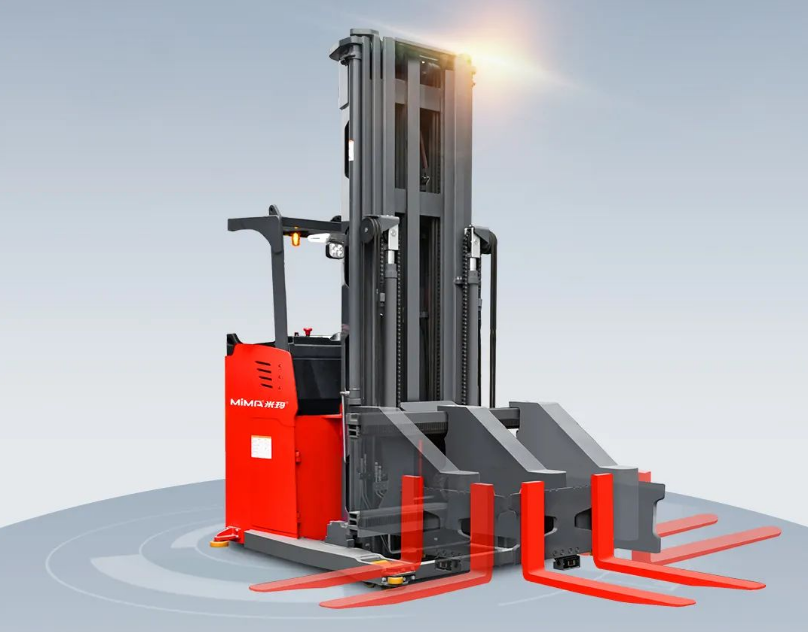 全面升级的MC16站驾式三向堆车具有高效灵活、安全稳定、提升库容的特点。