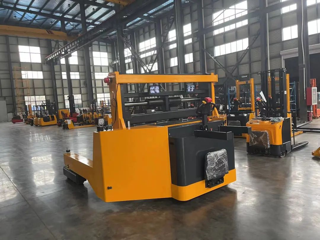 无锡大隆的大吨位15吨搬运车选用48V同步双驱设计,更适应各类工况,自研发AC大扭矩驱动总成,可满足8-18吨货物搬运的需求,选用美国柯蒂斯AC控制器总成,反应灵敏,无故障;可选配液压调距货叉,适应各种尺寸的货物;装有360度全景摄像头及距离报警器,保证操作人员的安全,电池容量选配丰富,满足4-16小时的工作时长。