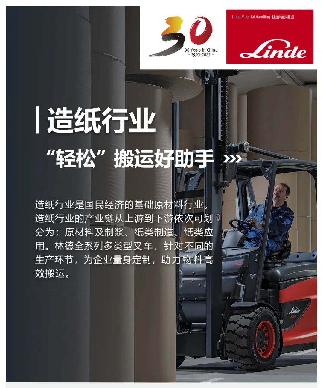 “纸”日可待 | 林德叉车助力造纸行业高效搬运