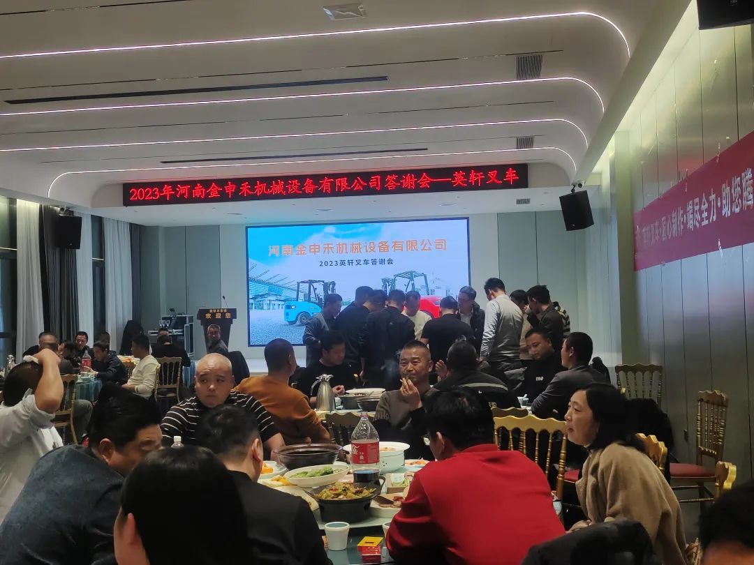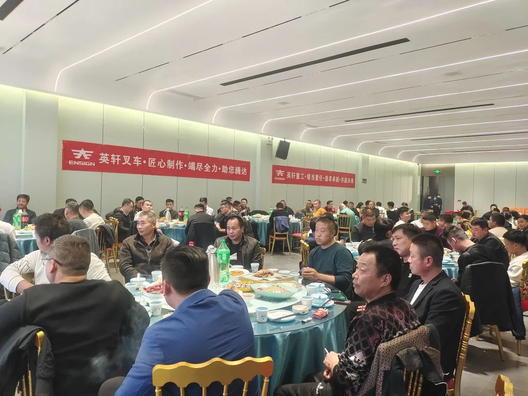 当晚的答谢宴会上,英轩叉车为每一位客户精心准备了丰富的菜肴和美酒。张总与秦总在晚宴上再次表达了对客户的感谢:“今天,我们不仅为了感谢大家一路走来的支持,更希望在未来能与大家继续携手并进,共同创造更多的辉煌。”