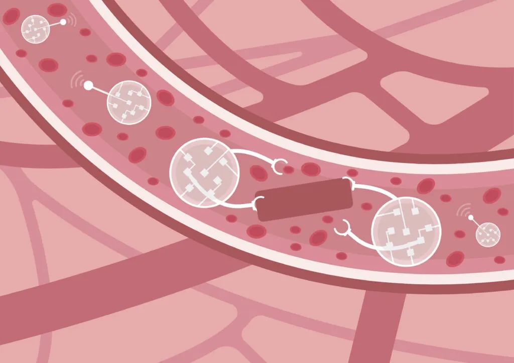 在未来的医学中,纳米机器人在血管内发挥作用,检测并消除阻碍正常循环的血栓。