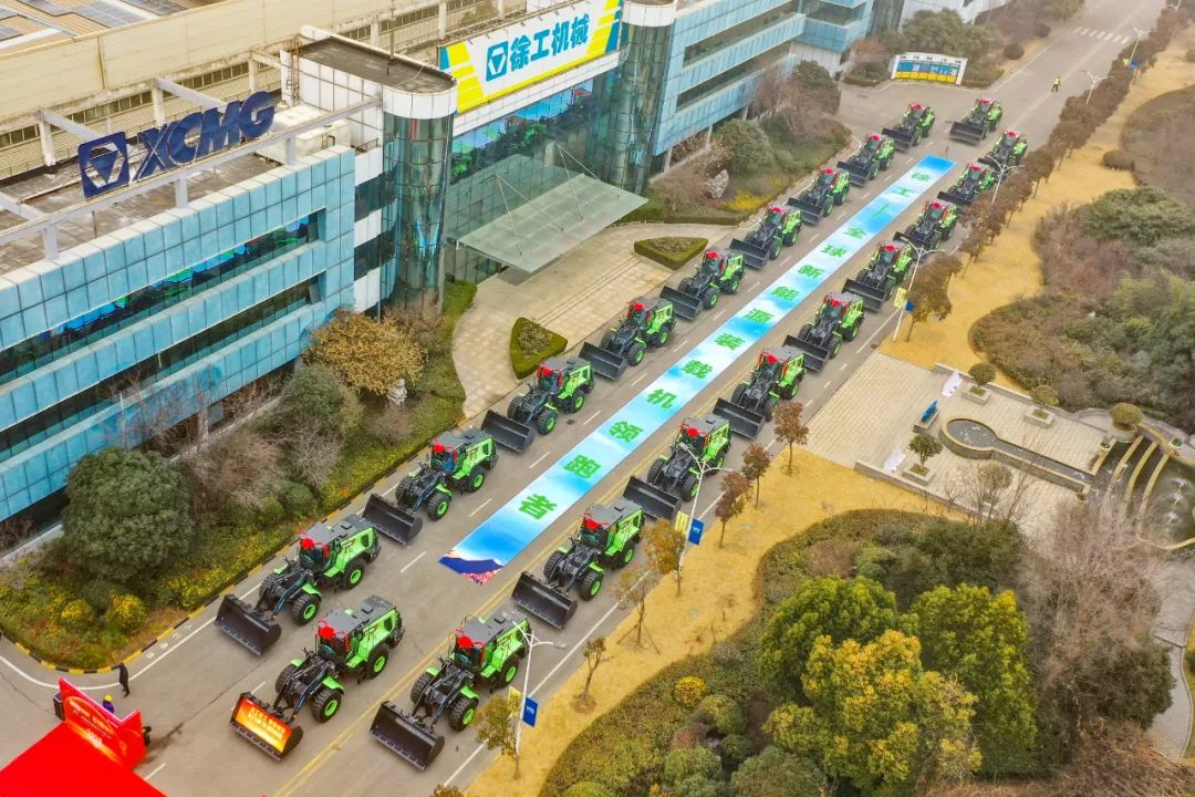 元旦刚过,徐工绿色化、数字化装载机械制造基地内喜气盈门,绿动先锋徐工XC968-EV纯电动装载机庄严列队、整装待发,翠绿色涂装在阳光照耀下熠熠生辉。