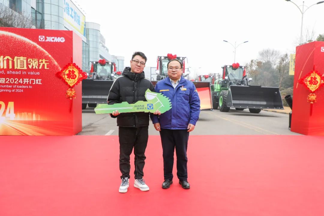徐工铲运副总经理、营销公司总经理刘鹏向客户交付象征双方共赢的财富钥匙