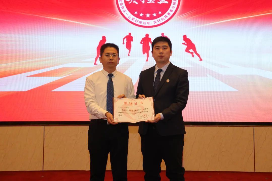 随后,王局长代表县慈善总会向英轩集团颁发捐赠证书,英轩控股集团总裁李彦轩先生代表集团接收证书。王局长在讲话中表示,英轩集团的捐赠是企业回馈社会的一种爱心传递,是一种关注教育发展的表达,更是一种激励莘莘学子茁壮成长、履行社会责任的使命担当;相关单位要严格按照《英才工程基金》章程开展好工作;同时勉励受助学子心怀感恩、志存高远、脚踏实地,把社会各界的关爱转化为发奋图强的动力,用优异的学业成绩回报家乡、回馈社会。