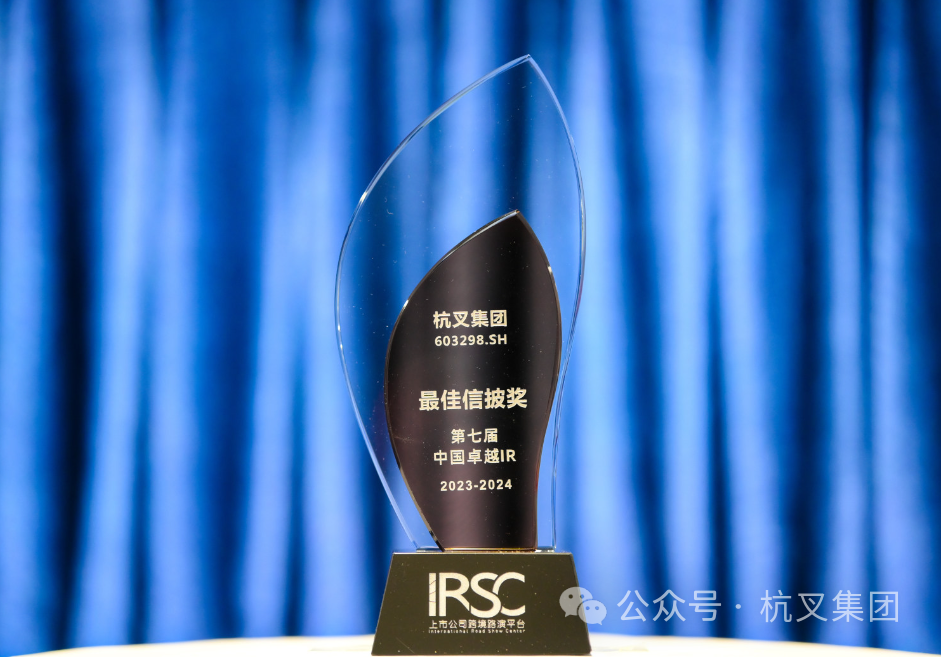 2024年1月11日,杭叉集团(603298)在第七届中国卓越IR评选中荣膺“最佳信披奖”。该奖项评选结果已于2024年1月11日举行的“东方拂晓”2024上市公司投资者关系创新峰会暨第七届中国卓越IR颁奖盛典公布。公平、公正、公开是市场发展的基石,合规高效的信息披露工作是一家上市公司赢得投资者信任和尊重的前提,此次所荣获奖项充分表明资本市场对杭叉集团上市公司规范治理及信息披露工作的认可。